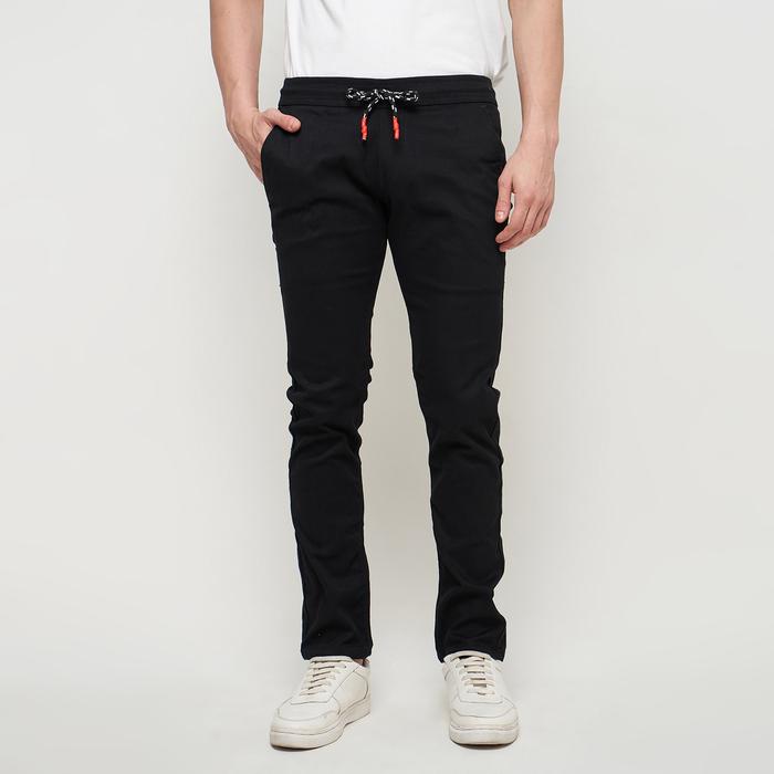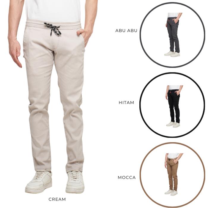 EMOLINE Celana Chino Pinggang Karet Panjang Pria Katun Stretch All Variant - Chino Panjang Pria Slim Fit - Hitam 30