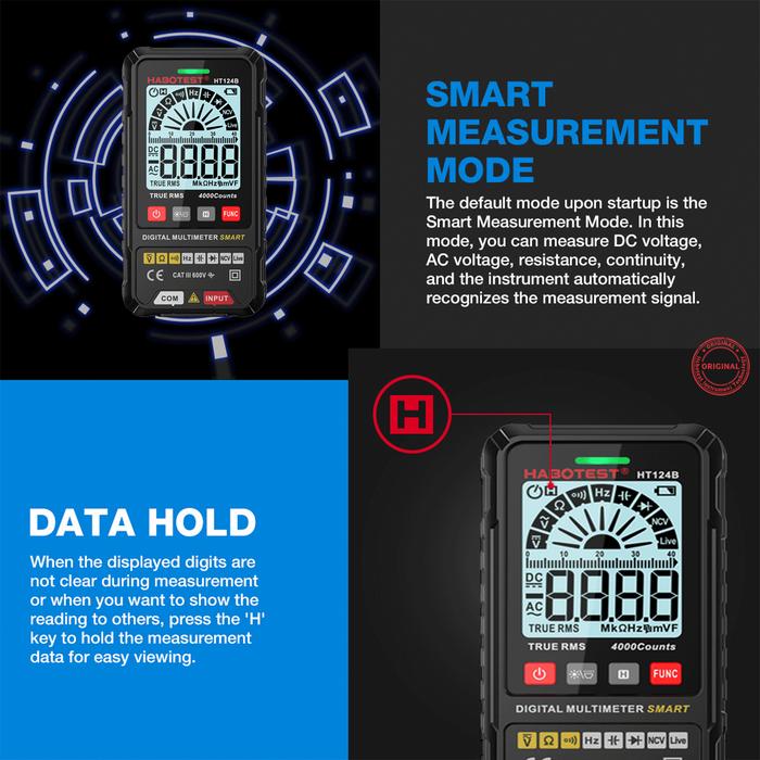 [SPECIAL PRICE] HABOTEST HT124 B Multimeter Digital 600V AC DC TRUE RMS Pengukur Tegangan Otomatis Lampu Layar LCD
