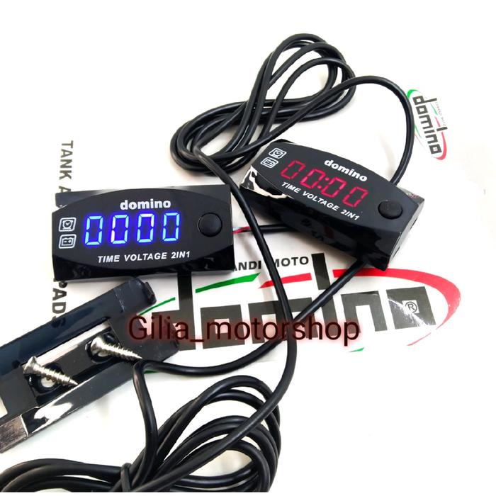 1 set Voltmeter 2 in 1 Domi no Digital Aki bisa untuk semua motor - merah