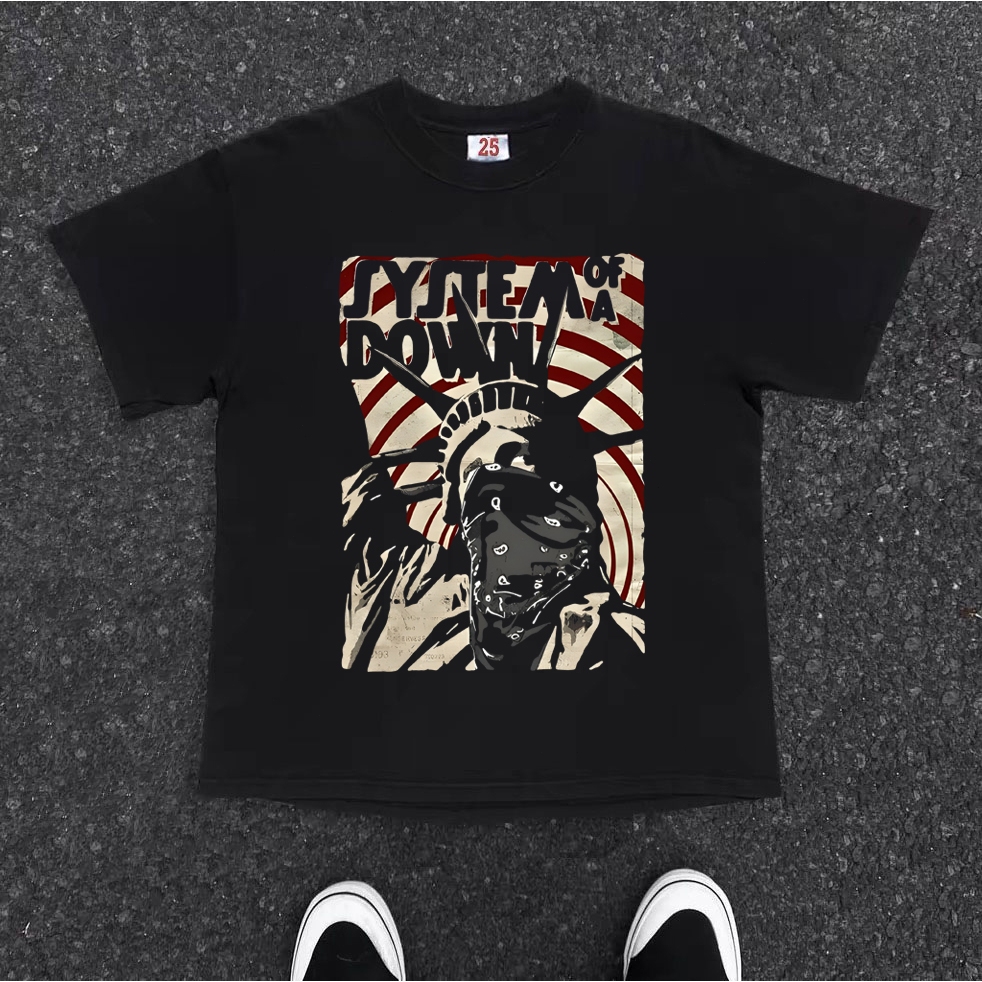 BOOMBAP American retro Style T-shirt Oversize JYJTEM Freedom Statue| Kaos Wanita Hitam | Kaos pria dan wanita | Street S