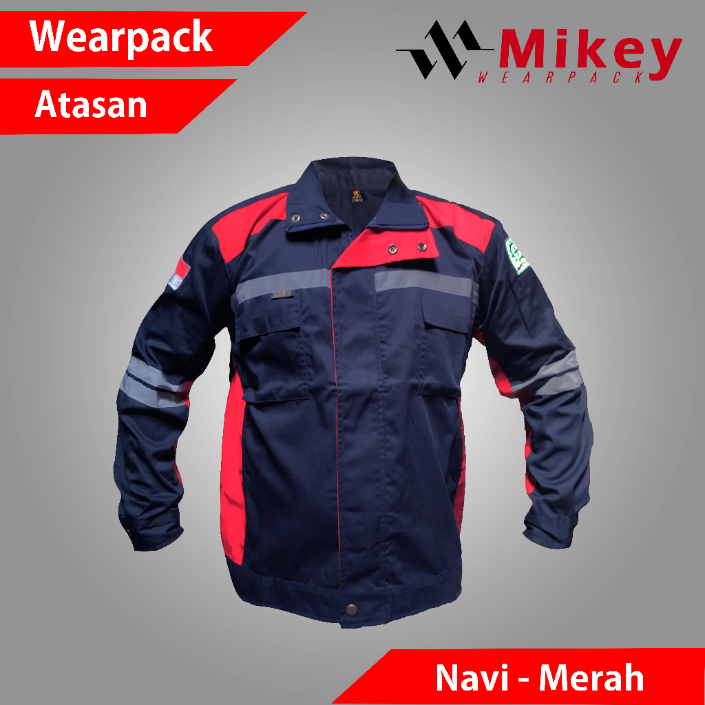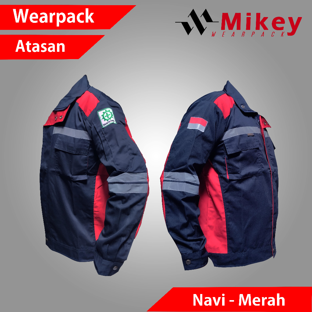 Kemeja Kerja Proyek Wearpack Atasan Katelpak Semi Jaket Navi Kombinasi Merah