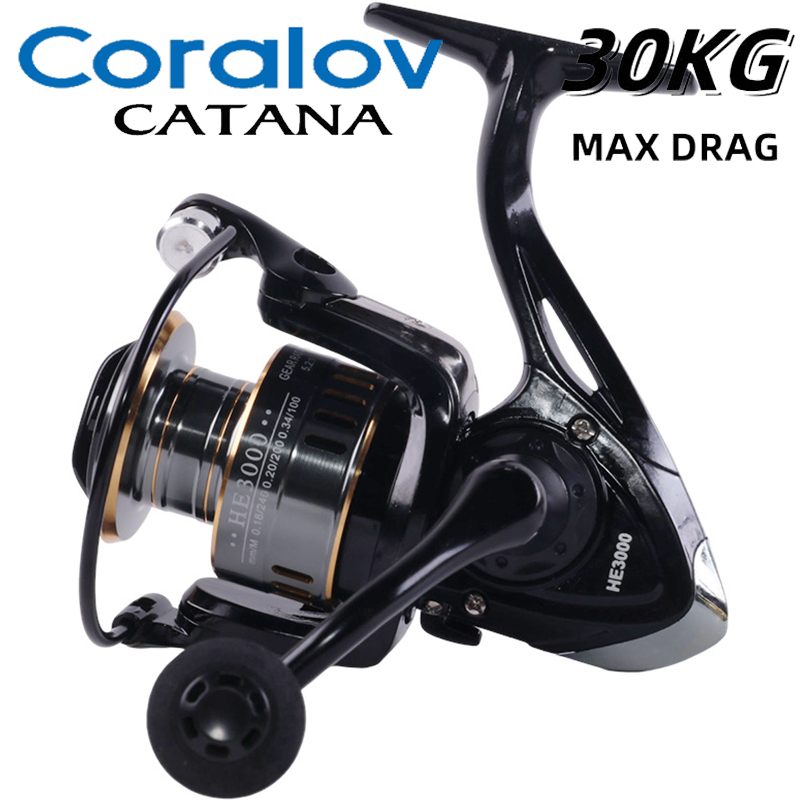 CORALOV HE Reel Pancing Tarikan Max Drag 30KG Reel Spinning Gear 5.2: 1 Gagang CNC Spul Logam 12BB Rol Gulung Air Asin G