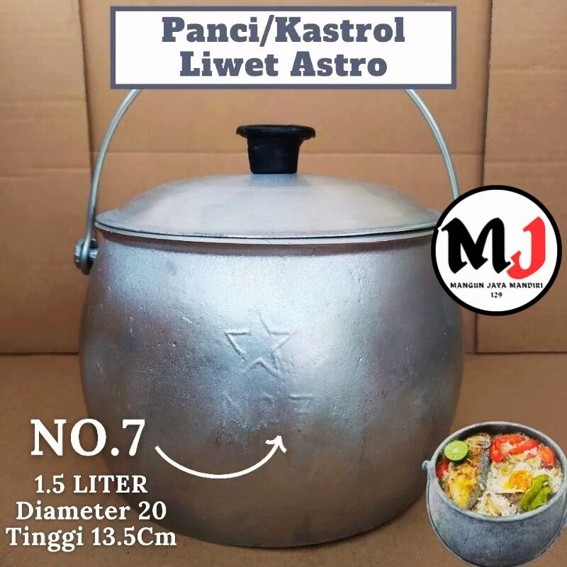 Kastrol Liwet ukuran 2 liter Cap Bintang Satu Penanak Nasi Tradisional Alumunium Tebal