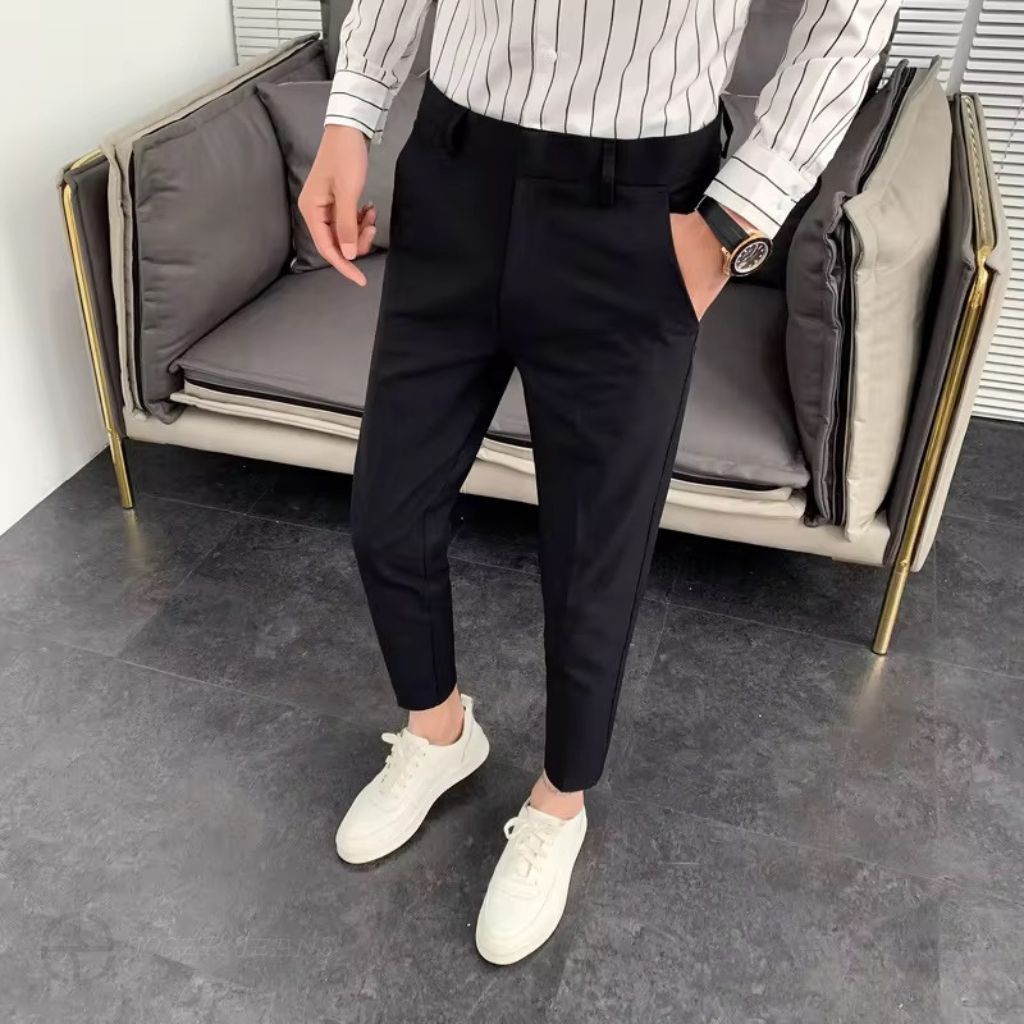 CELANA BAHAN | KERJA | FORMAL | KANTOR | PANJANG | HITAM | DASAR PRIA SLIMFIT _-_