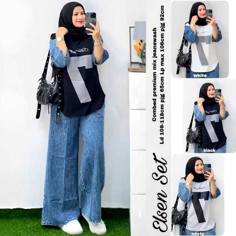 SETELAN KULOT SETCEL KULOT JEANS MIX KAOS COMBAD TERBARU LD 110