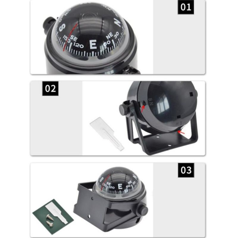 Kompas Kapal Perahu Laut Marine Compass untuk Sea Correction Navigasi Hitam