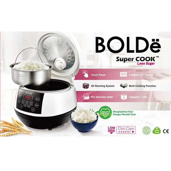 BOLDe Super COOK Less Sugar Rice Cooker 1 Liter Low Carbo 400 Watt