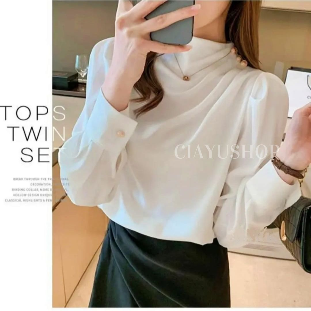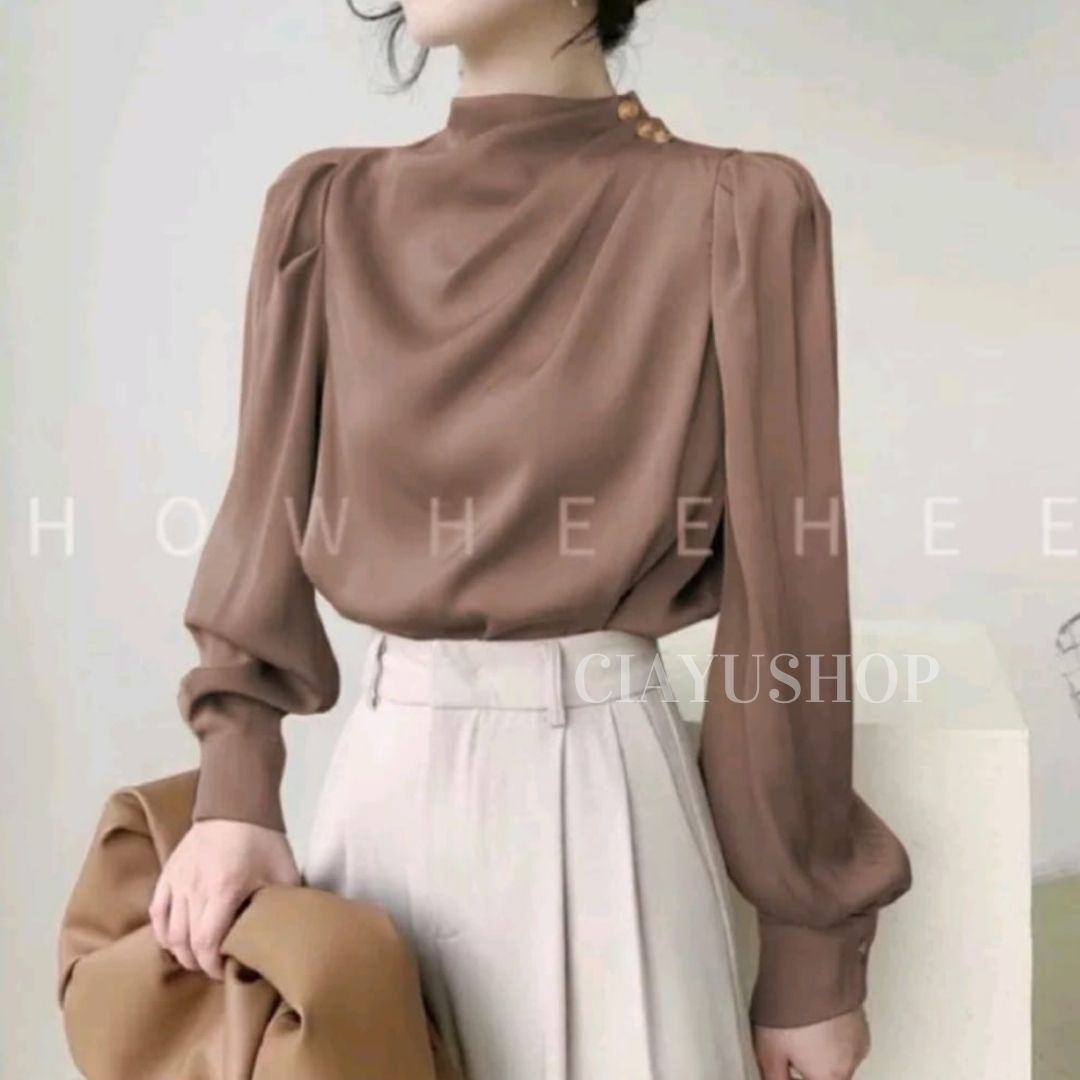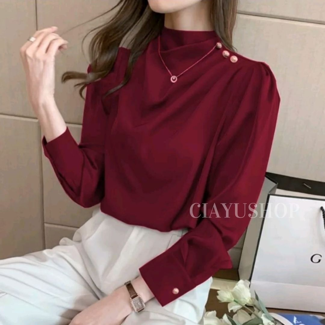 Blouse Athena Button Shoulder M L XL Silk Super Baju Atasan Wanita Formal Kerja Bisnis Terbaru