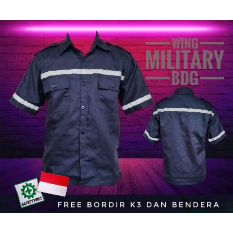 KEMEJA WERPAK SAFETY LENGAN PENDEK FREE EMBLEM BORDIR