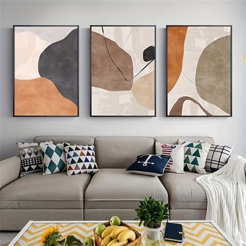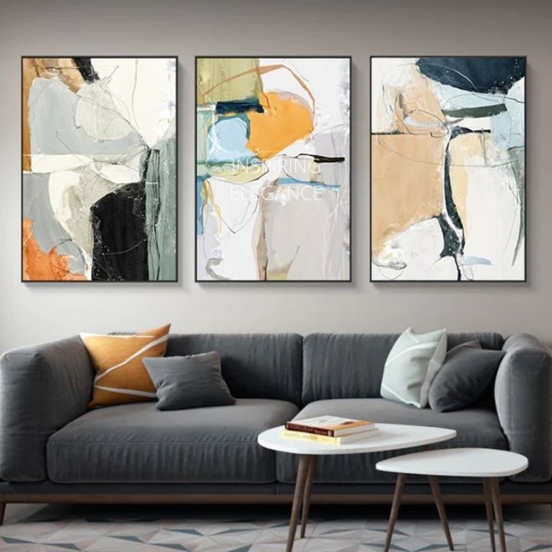 LUKISAN ABSTRAK HIASAN DINDING 3 PANEL (include frame, tinggal pajang)