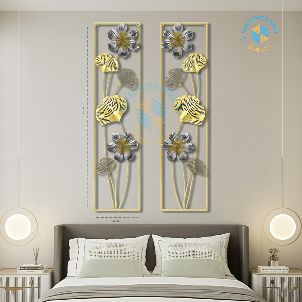 Walldecor Berkah Hiasan Dinding Besi Aesthetic 100*25 Cm Dekorasi Kamar Tidur Daun Bunga Leaf Gingko