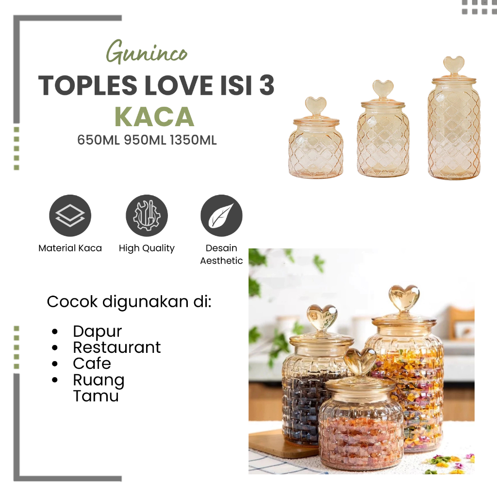 Guninco Promo Toples Love Set Isi 3 / Toples Snack Perman Toples Kue Kering Free Kartu Ucapan