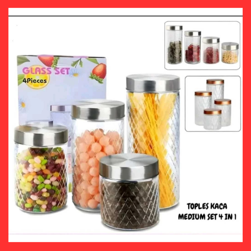 Toples Kaca Medium Set 4 In 1 Toples Kue Lebaran Elegant Mewah