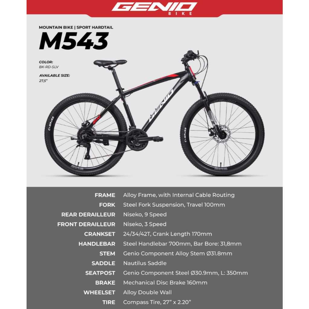 Sepeda Gunung Mtb 27.5 Inch Genio M703 10 Speed / Genio M543 27 Speed Frame Alloy