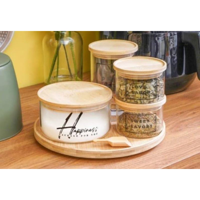 Informa Set 4Pcs Hailey Stoples Kaca Dengan Nampan/Toples Informa Set