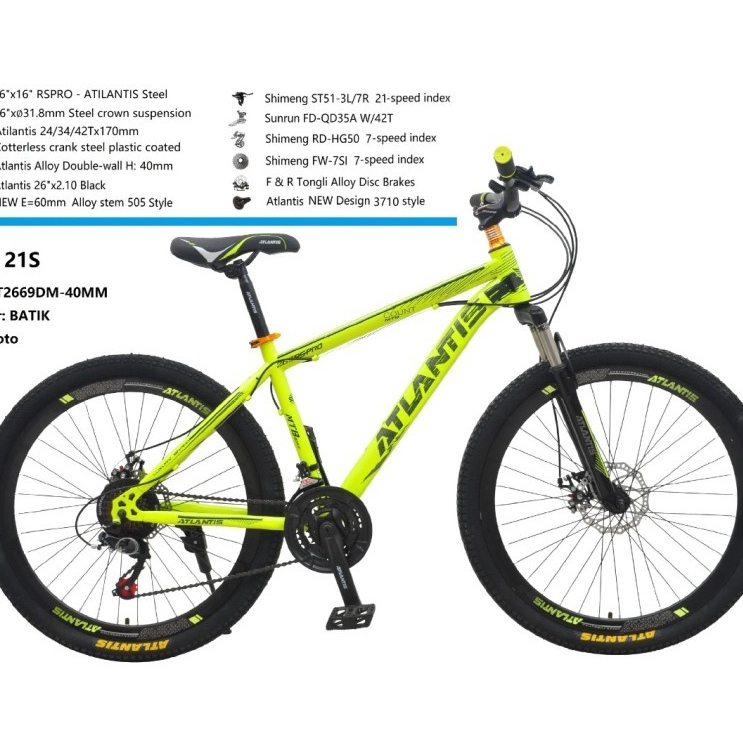 Sepeda Gunung Mtb 27.5 Inch Atlantis Velg Tinggi Tebal Alloy Dewasa Dan Anak Remaja Rem Cakram High Quality Sni New