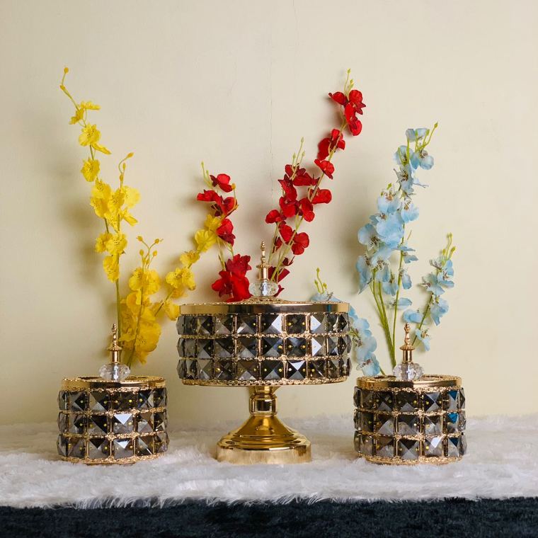 Toples Crystal Hitam 3In1 / Toples Kristal Penyimpanan Set Mewah Dekorasi