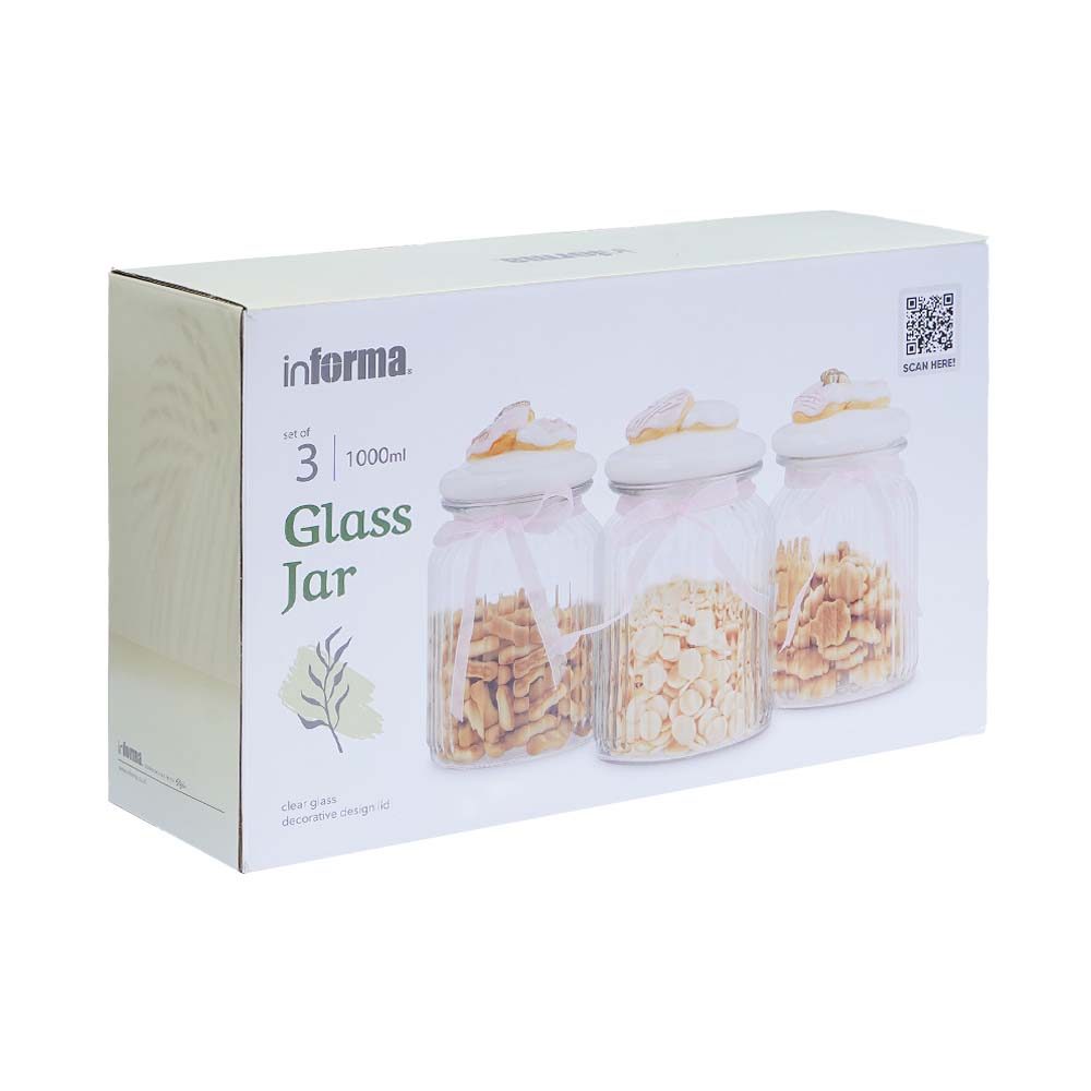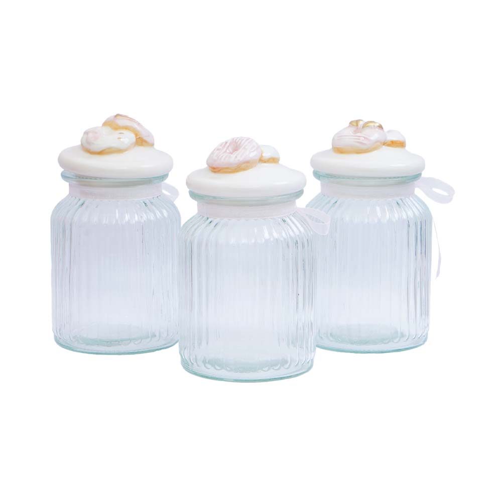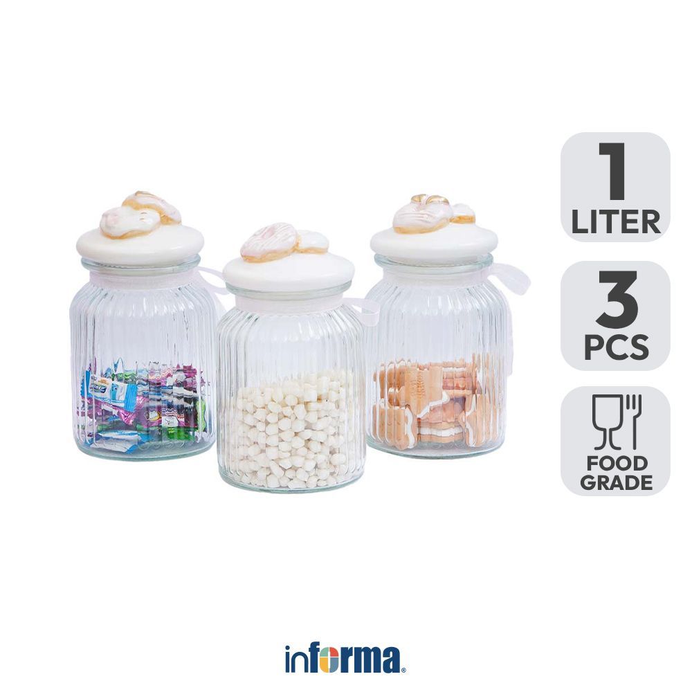 Informa 1 Ltr Set 3 Pcs Stoples Kaca Donut - Pink Toples Jar Wadah Makanan Food Container