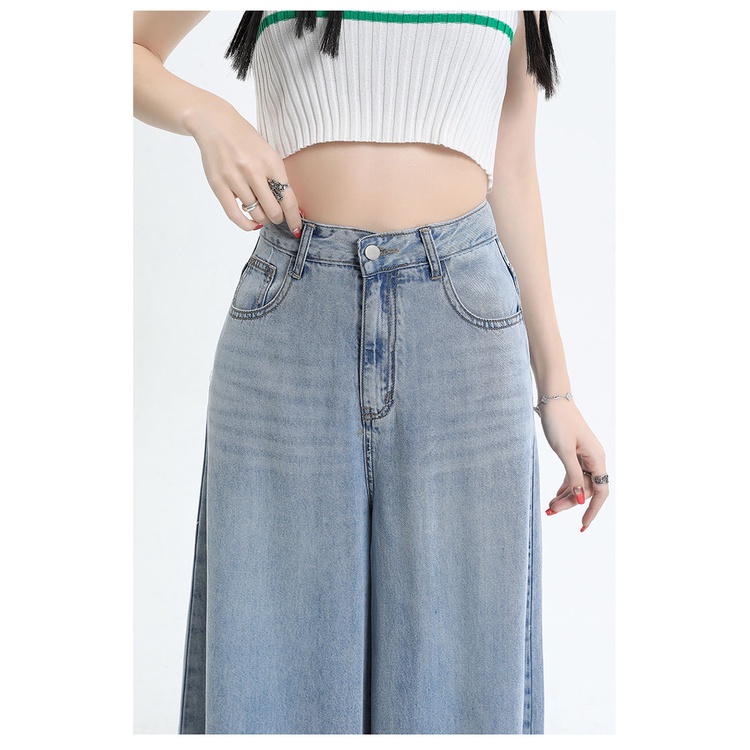 Celana Jeans Wanita Model A-Line Longgar Dengan Pinggang Tinggi