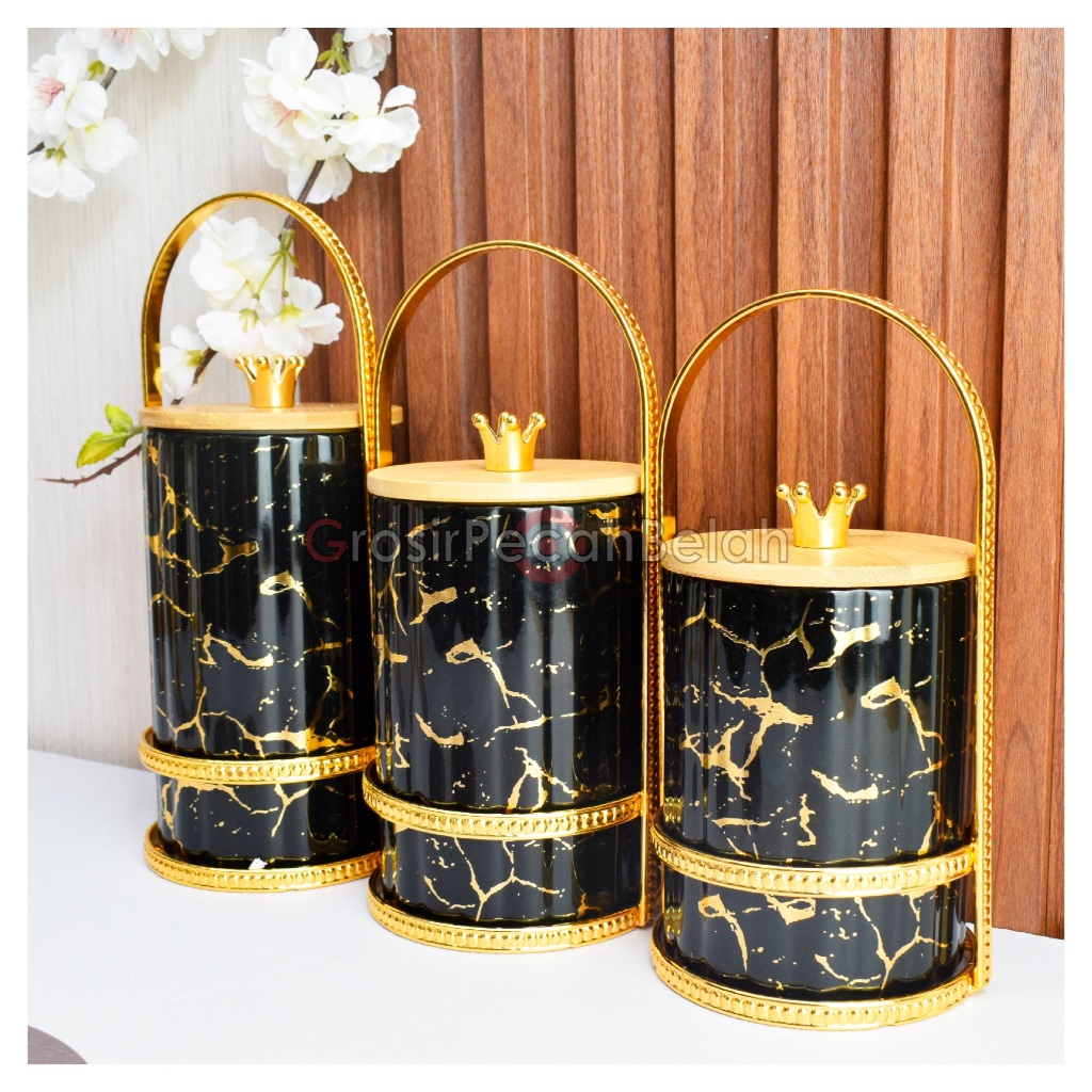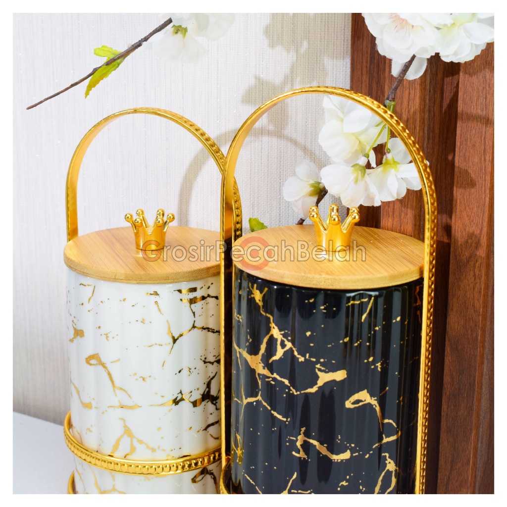 Toples Kue Makanan Keramik Set Dengan Rak Motif Marble Fiorenza 192