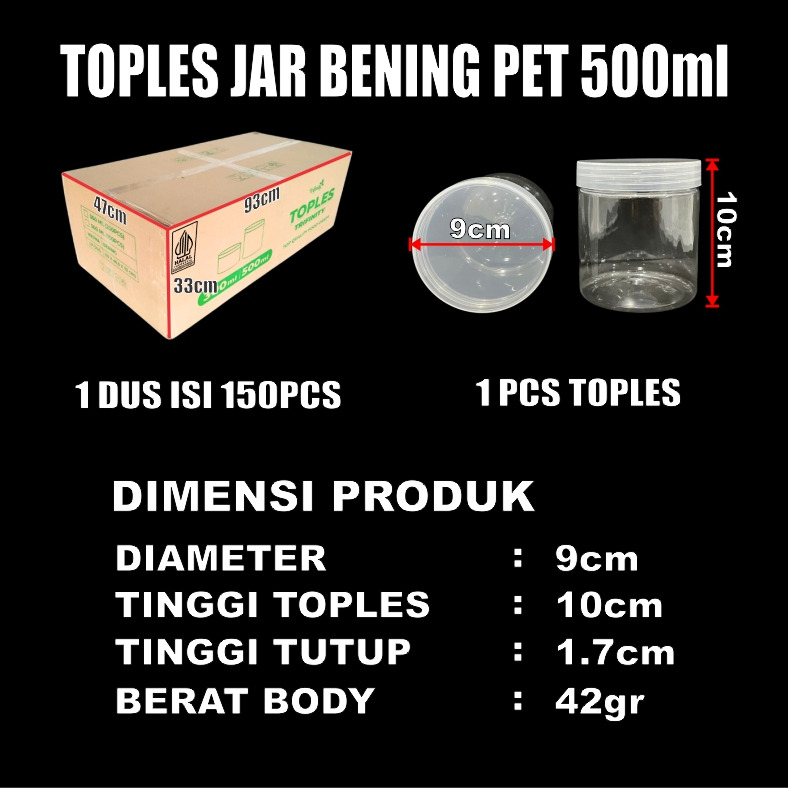 Toples Tebal 60Gr 200Ml 300Ml 400Ml 500Ml 750Ml 1000Ml 1300Ml N Seal Dus Plastik Jar Bening Pet Gjk