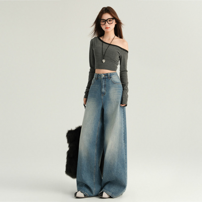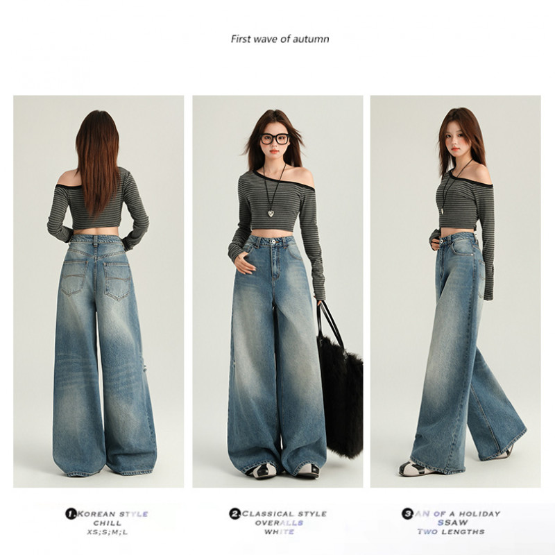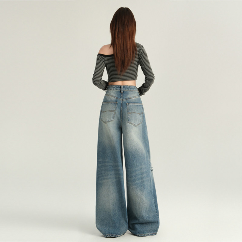MEET.U S-6XL Baggay Jeans Koleksi Longgar Wanita Jeans Kaki Lebar Pinggang Tinggi