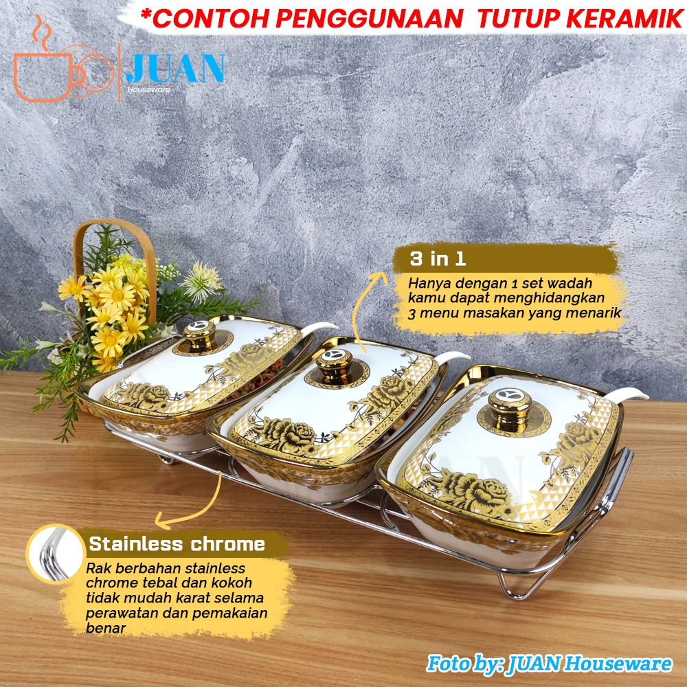 Vicenza Prasmanan Set Keramik Motif Gemini + Rak + Tutup Kaca & Tutup Keramik / Caasserole Set Porcelain Cr-751-Dc