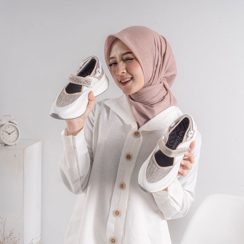 Zunika - Yasmin White Slip-On Velcro Sepatu Sneaker Wanita