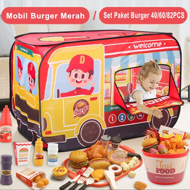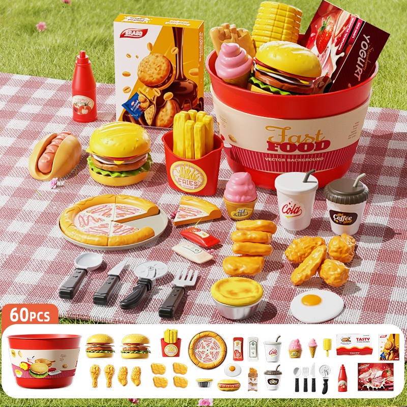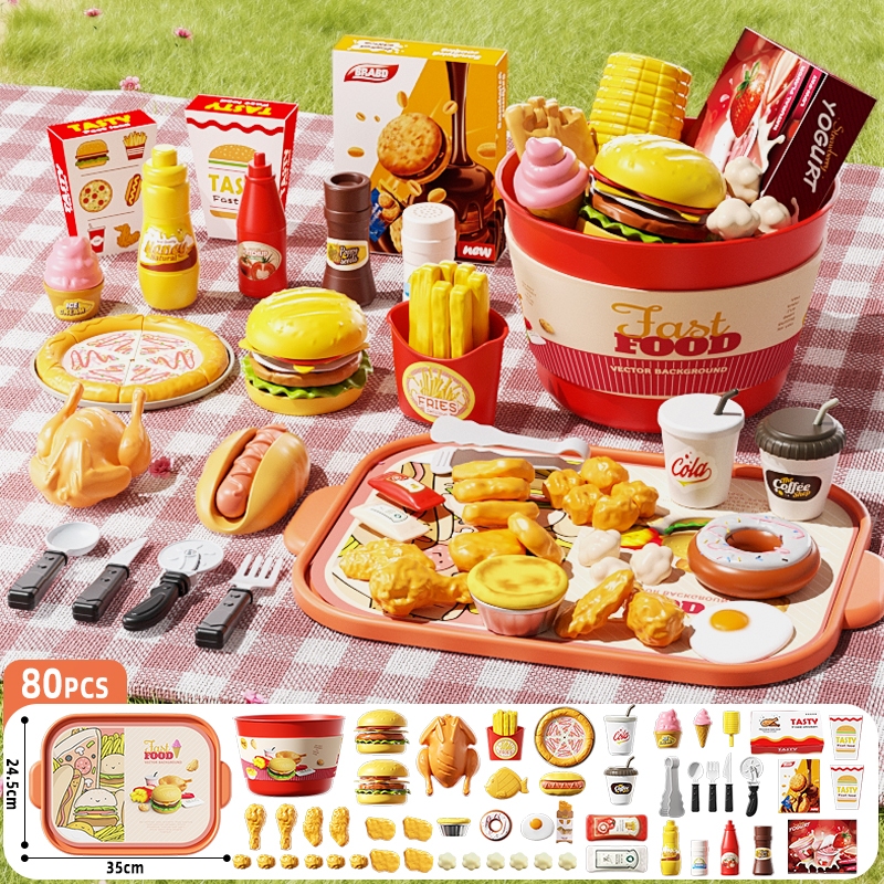 JIQILE Mainan Masak-masakan DIY Dapur Set Makanan Cepat Saji Burger Kentang Goreng Anak-anak