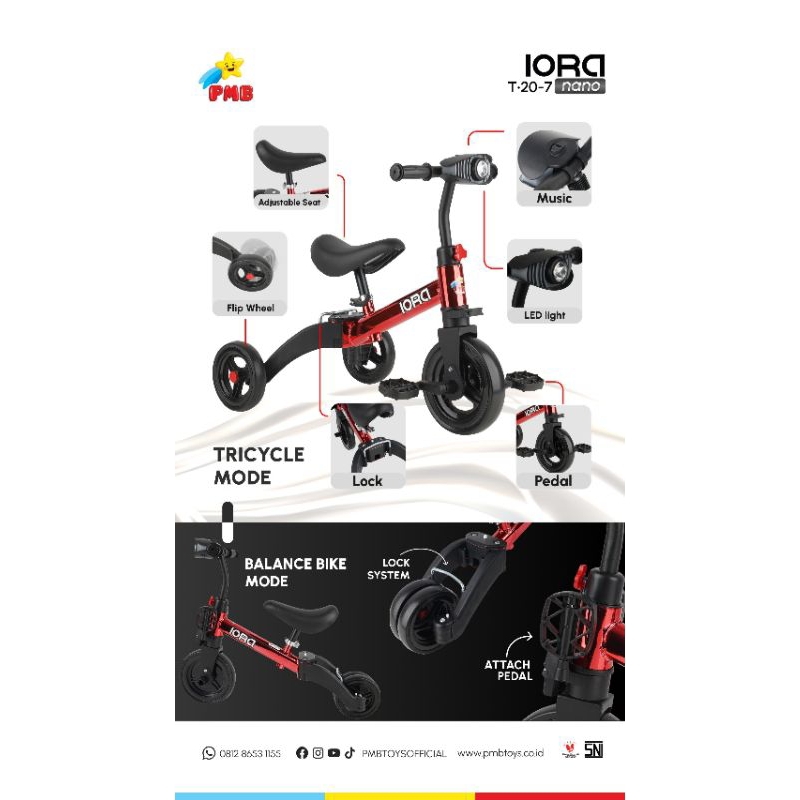 Sepeda Anak Roda Tiga Tricycle Pmb T20-7 Balance Bike