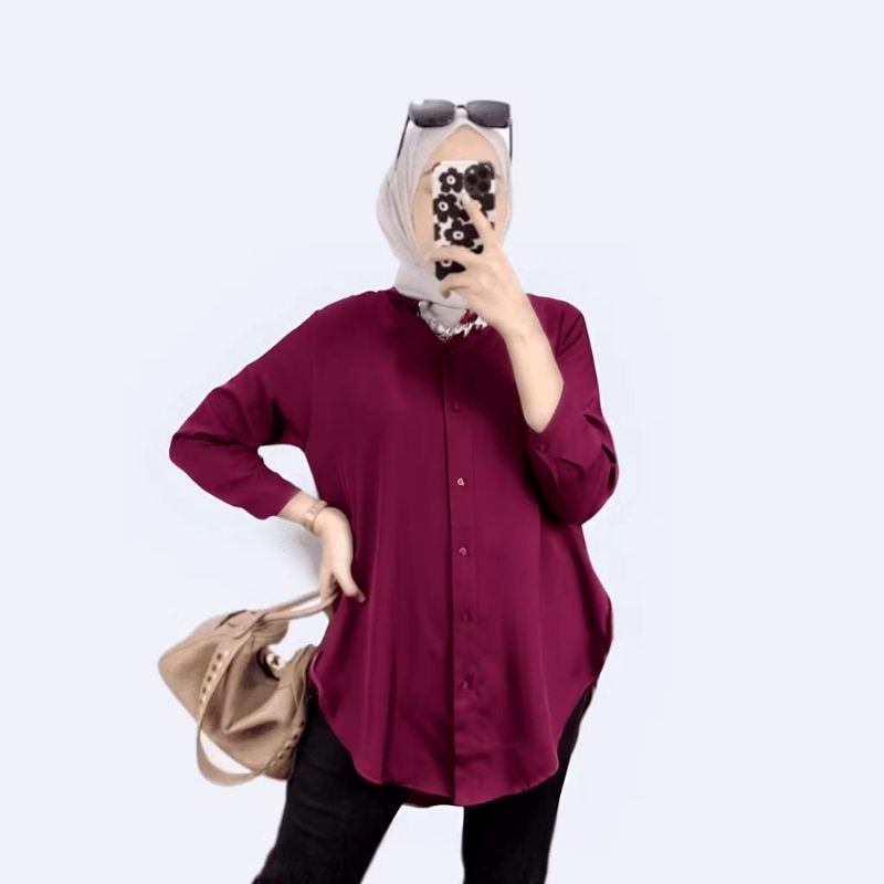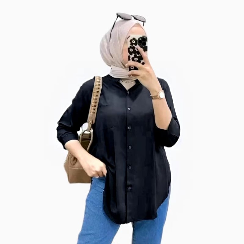Kemeja Wanita Rayon Twill los T0P Blouse Basic Kemeja Wanita Lengan 7/8 Wanita Over Size