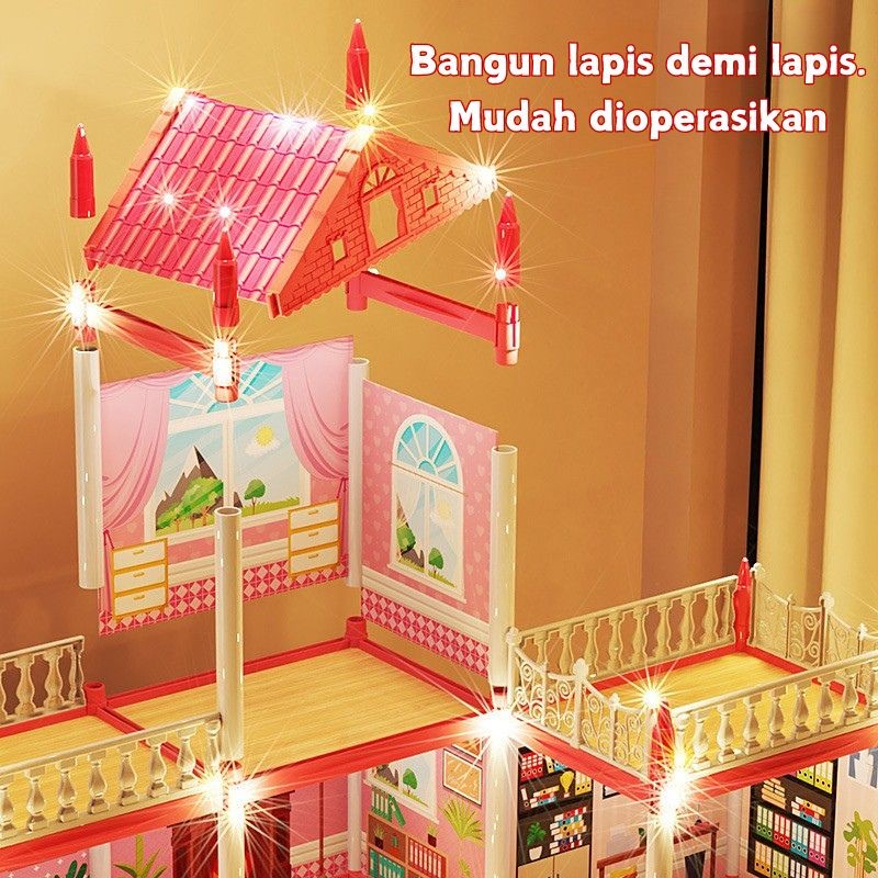 Doll House Princess Castle Dream House Dengan Lampu/3D Princess Big Pink Villa DIY Doll House/ Mainan Anak Perempua