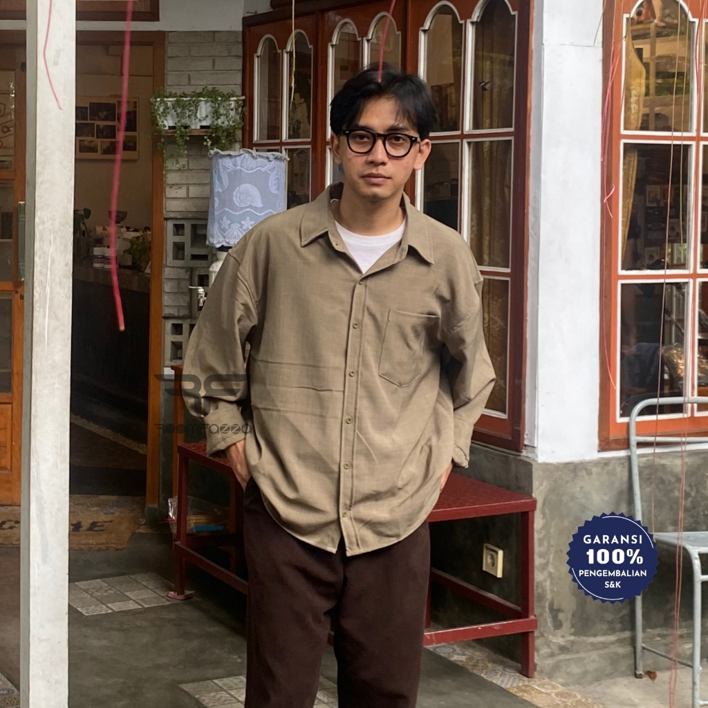 RoomFazza Kemeja Lengan Panjang Oversized Pria Kemeja Kasual Kemeja los Kemeja Pria Kemeja Oversize