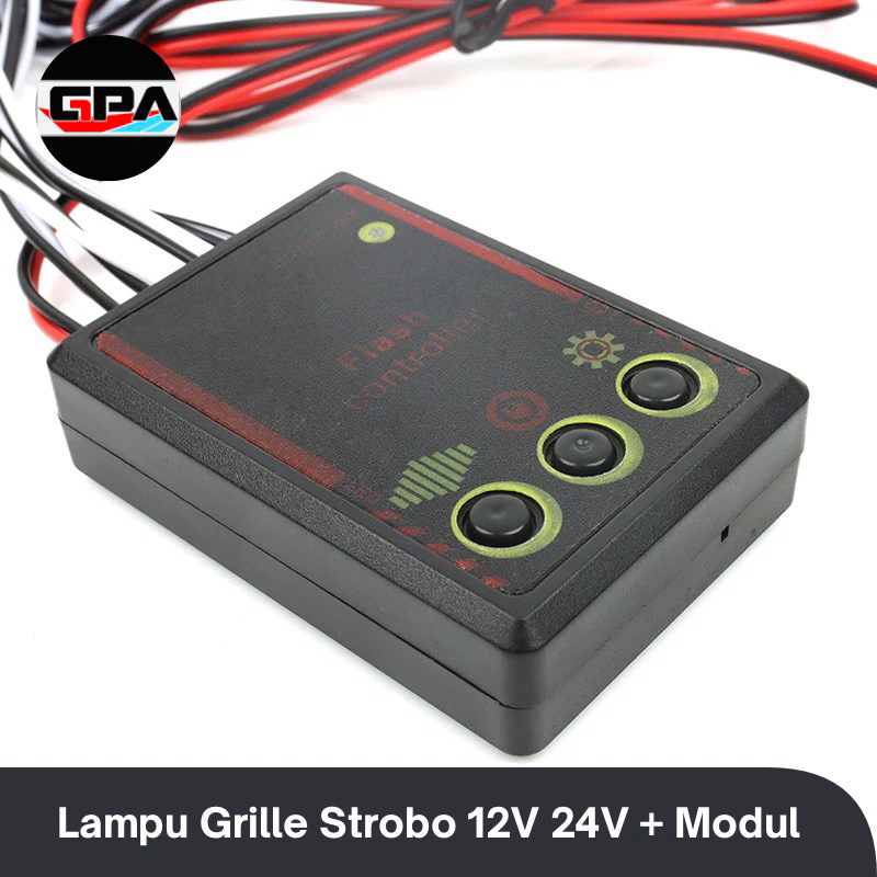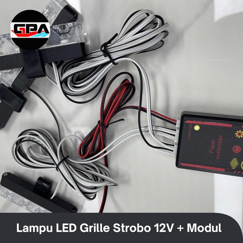 Lampu Kedip Grill LED 9106 9104 4 Mata 12V dengan Controller On Off dan Mode Kedip Jepit Gril bukan Federal