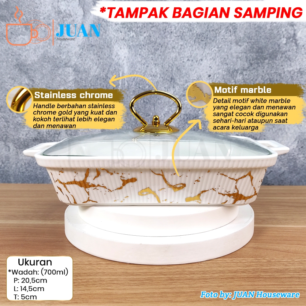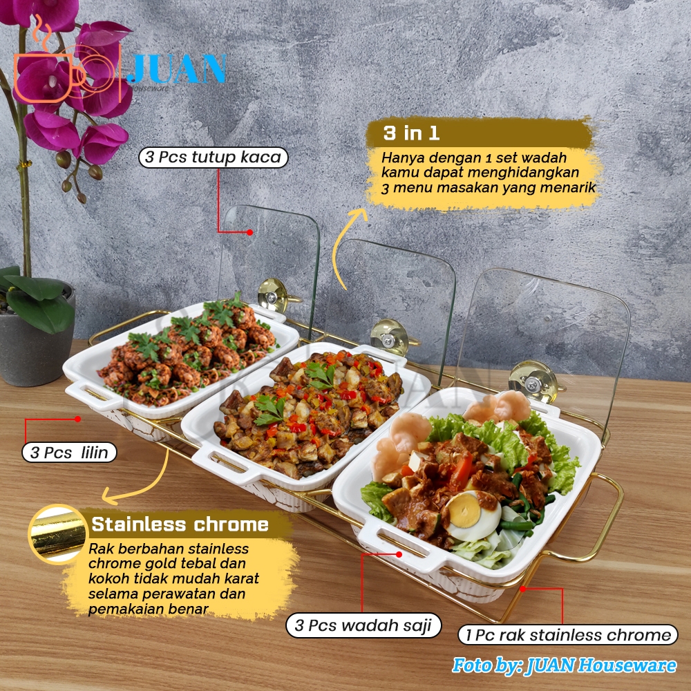 Fiorenza Prasmanan Set Isi 3 + Tutup Kaca + Rak Stainless Motif White Marble / Square Casserole Set With Glass Lid Type