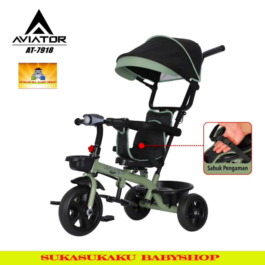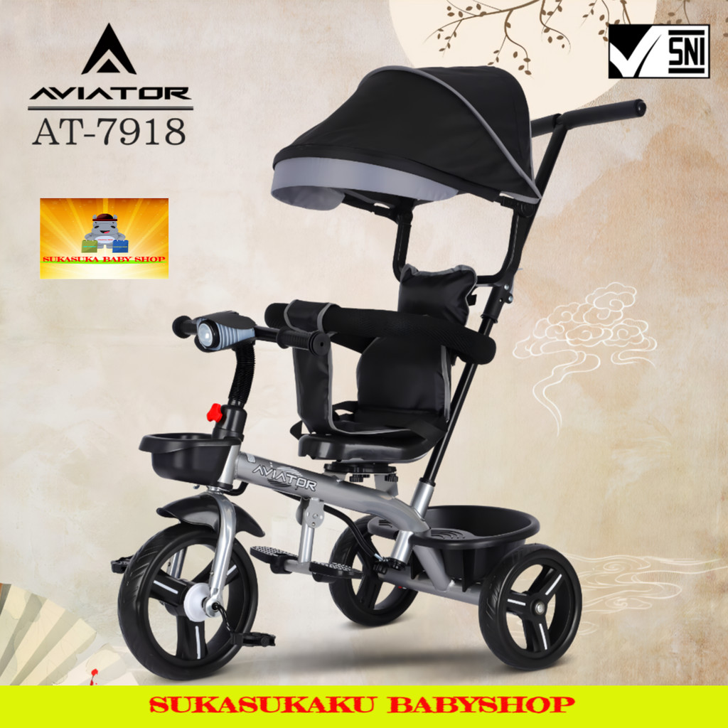 Sepeda Anak Roda 3 Tiga Tricycle Aviator At 7918 Lampu Musik Kursi Hadap Depan Belakang