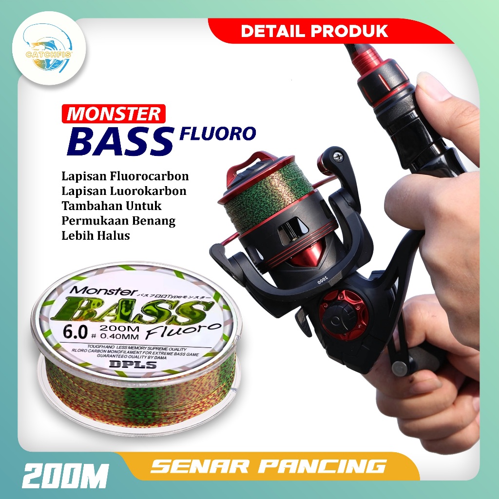 CATCHFIS Tali Pancing Bass FLUOROCARBON 200M Hijau Lumut Bahan Nilon