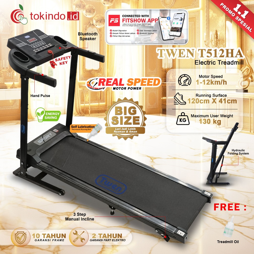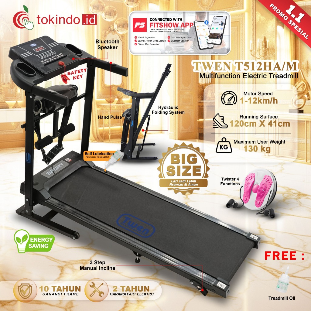 TWEN T512HA +M Treadmill Listrik Treadmill Portable Treadmill Multifungsi Treadmil Lipat Treadmill Electric Low Watt Alat Olahraga