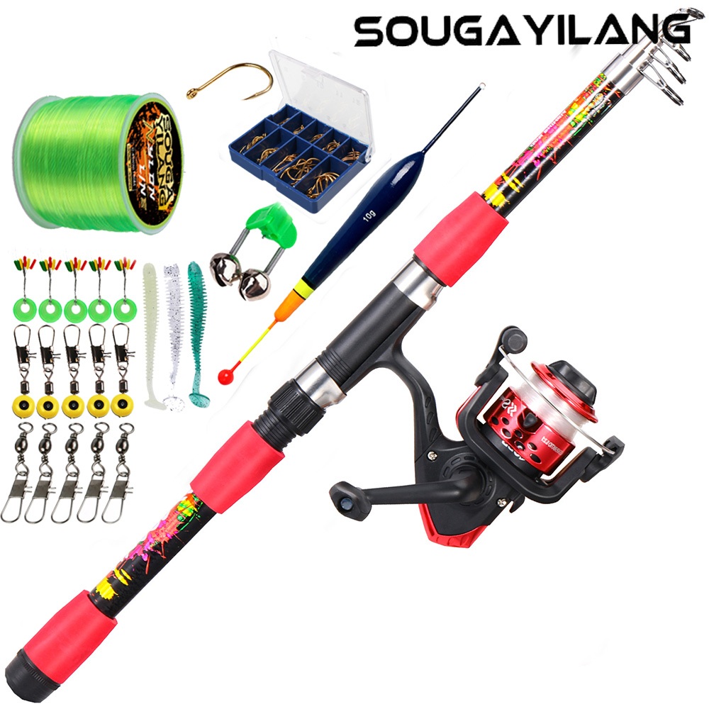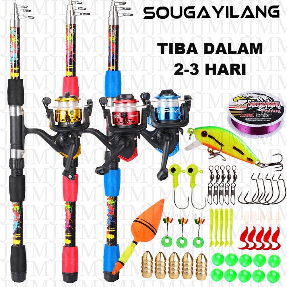 Sougayilang pancing Set 3 warna joran pancing 1,8m set yang ditingkatkan gulungan 3BB daya tarik maksimum 6kg