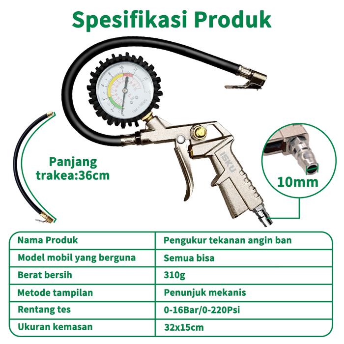 ISKU Tire Pressure Gauge 3 in 1 Inflator Gun Alat Isi & Ukur Tekanan Angin Ban Mobil Motor