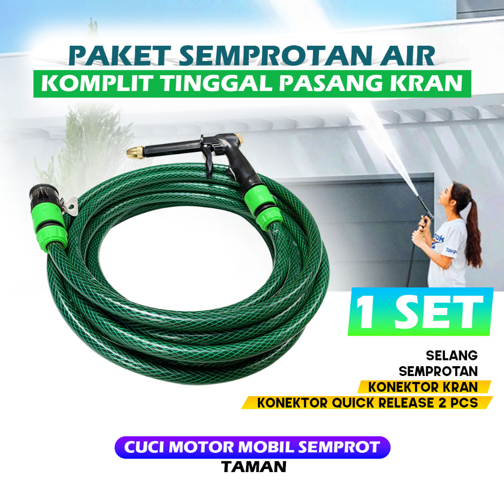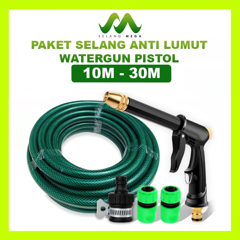 Mega Selang Air Cuci Motor 15 Meter 1/2 Inch Paket Semprotan Selang Air Benang Anti Lumut Dengan Watergun ...... Selang