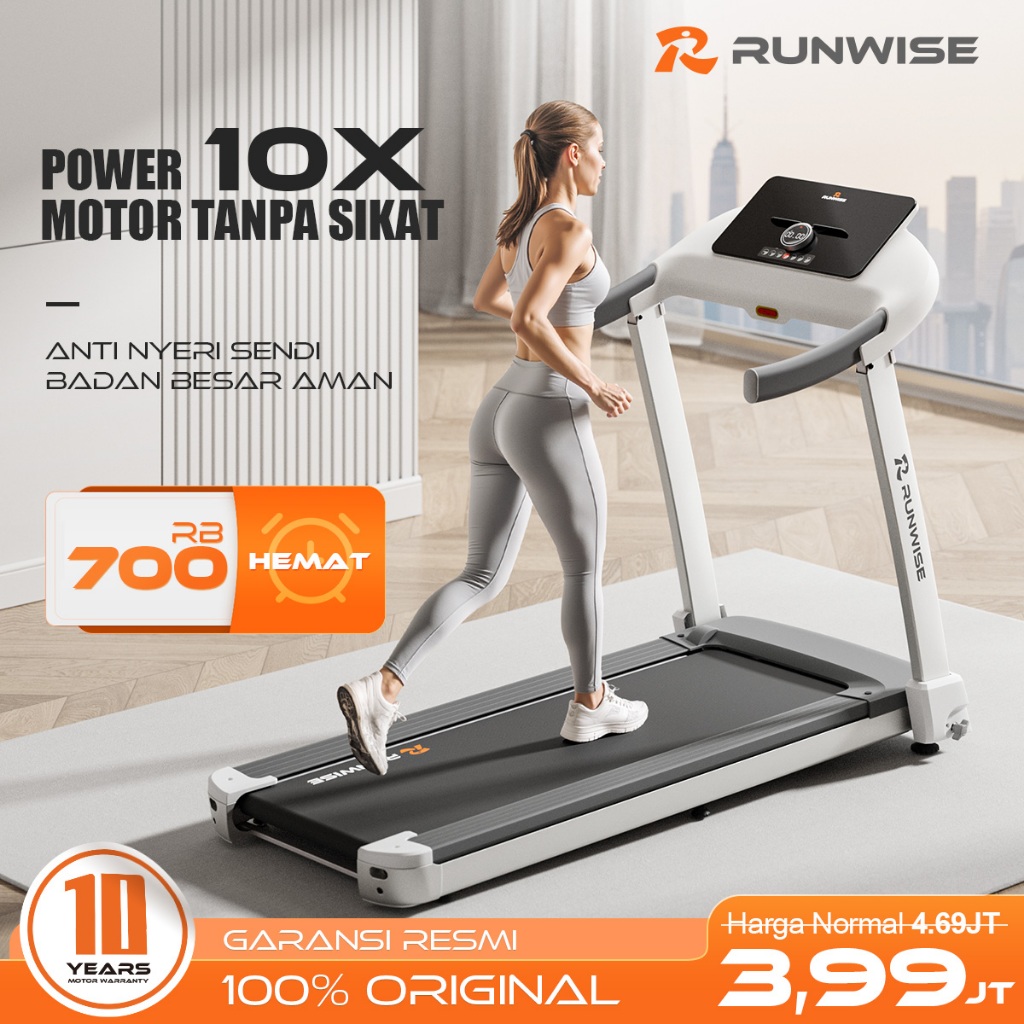 RUNWISE Treadmill Portable Premium 10X Brushless Motor - Alat Fitness Rumahan 3 in 1 (Walking/Jogging/Running)