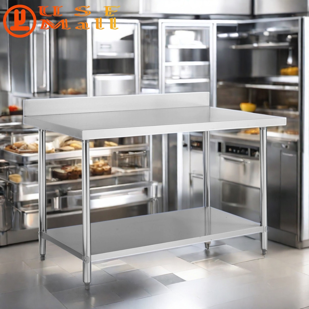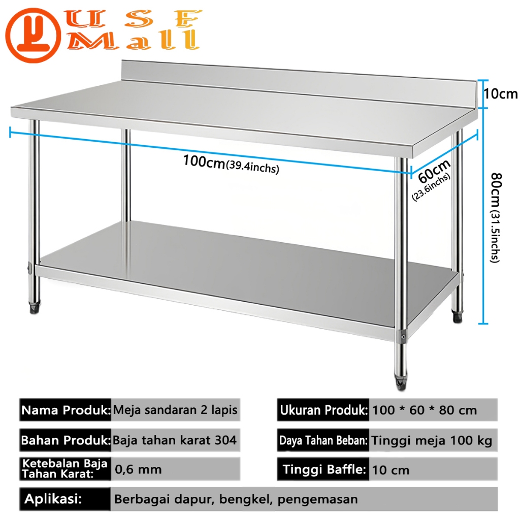 Meja Stainless Steel 304 Untuk Dapur Meja Kerja 2 lapis dengan Sandaran Meja penyimpanan 120*60*80cm