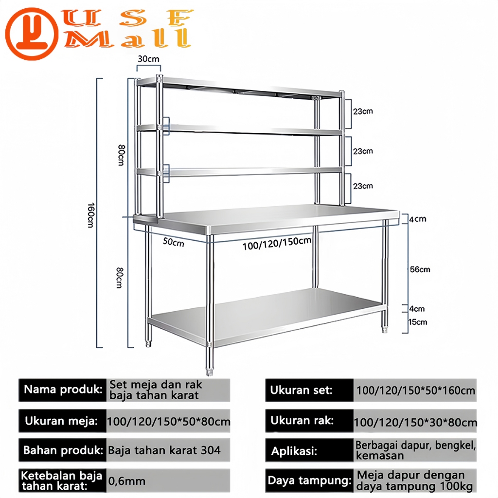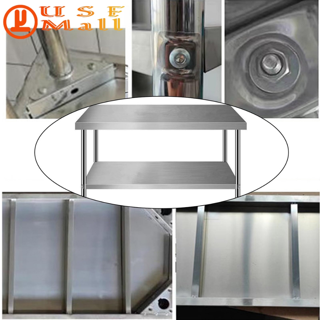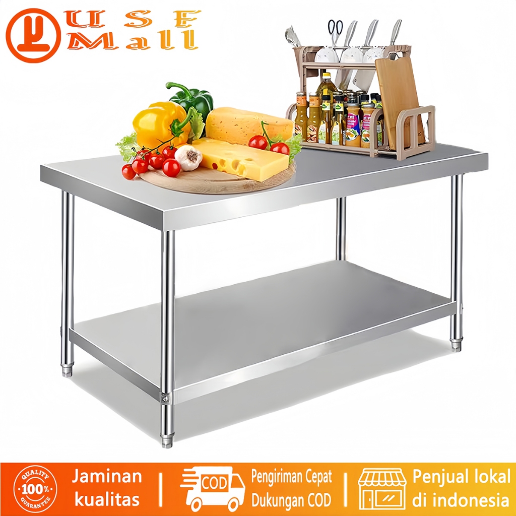 USF Meja Kerja Komersial Stainless Steel 304 Meja Penyimpanan Lapisan Ganda Peralatan Dapur Restoran