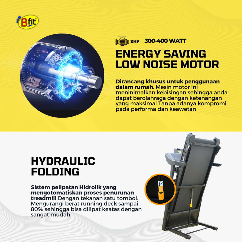 Treadmill Elektrik BFIT LITE-80 Auto Incline Multifungsi Listrik Lipat Portable Low Watt Fitness Gym