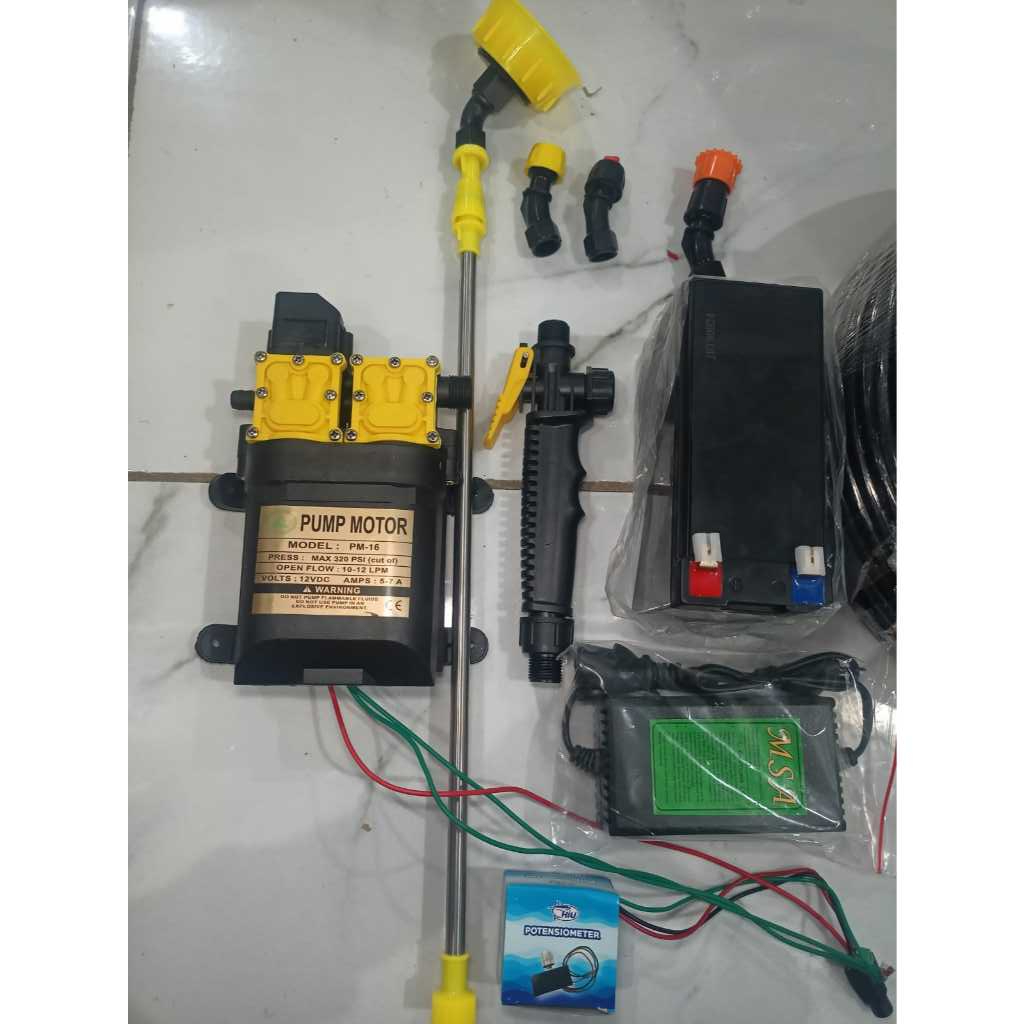 Paket Sprayer Pertanian Mesin Dobel Pompa 320Psi Aki 12V 8Ah Lengkap Selang 50 Meter Atau 100 Meter