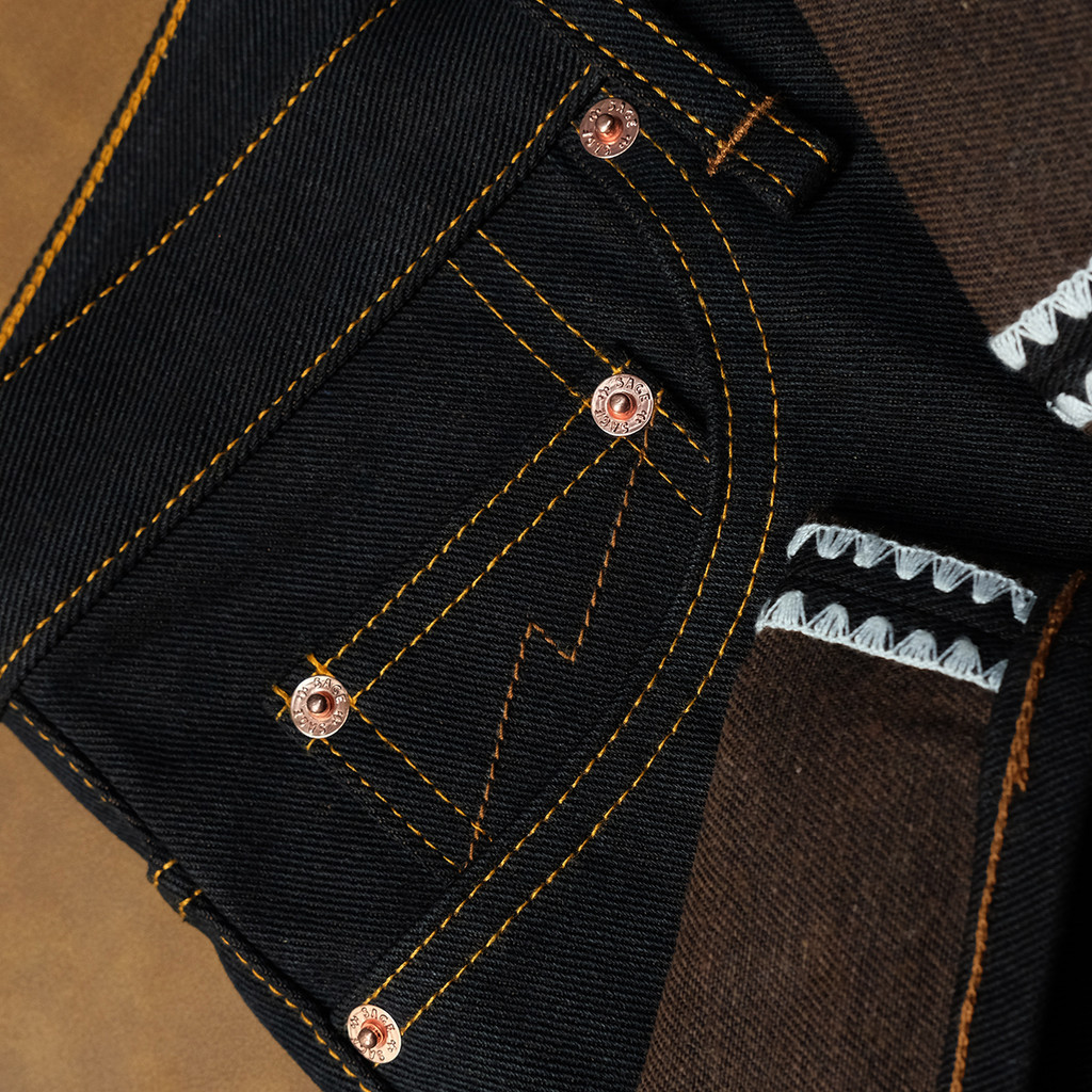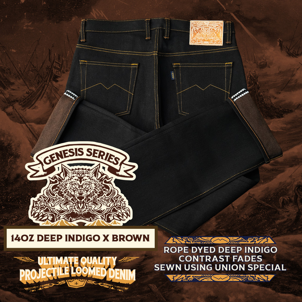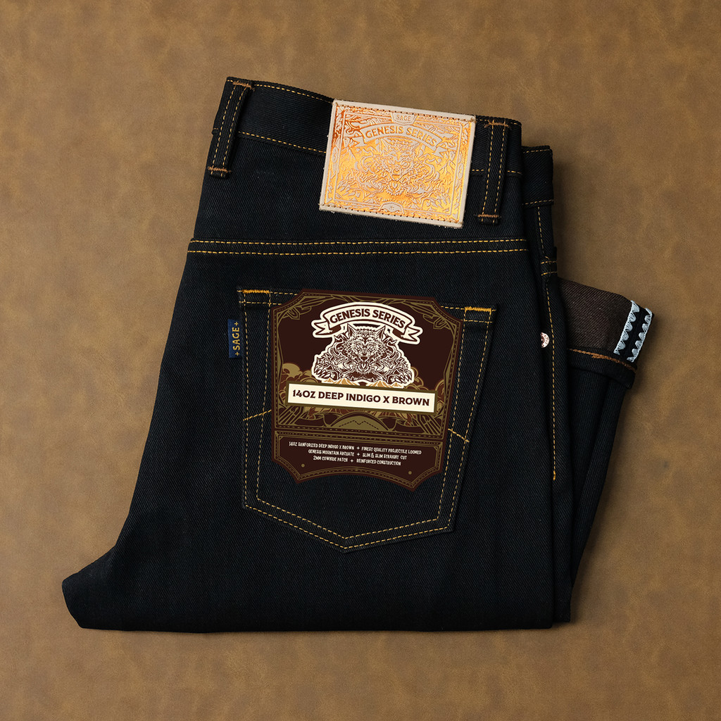 Sage Denim Genesis Series : 14oz Deep Indigo x Brown Weft Projectile Loomed Denim