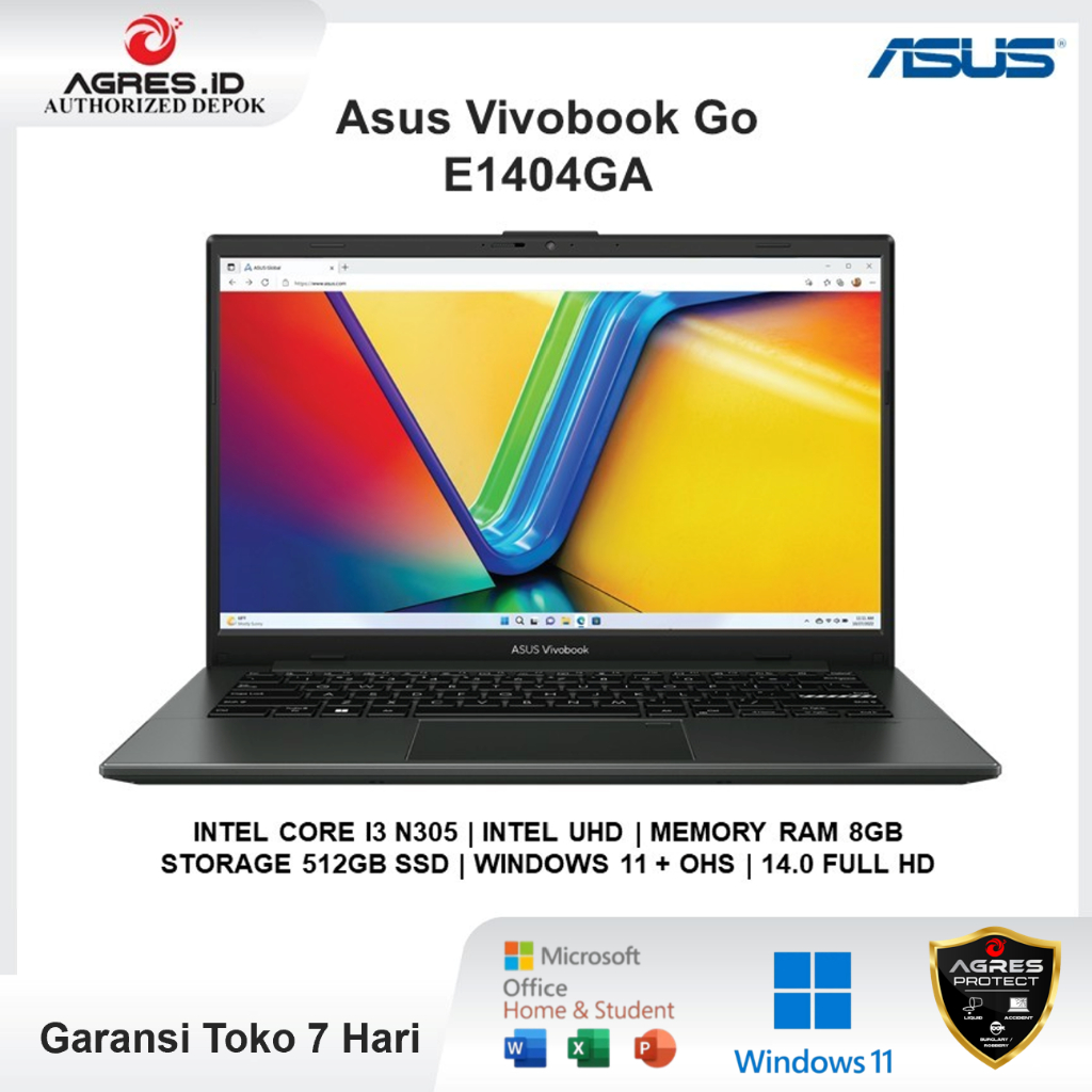 Asus Vivobook Go 14 E1404GA | Intel I3 N305 | RAM 8GB 512GB SSD | W11+OHS | 14.0 Inch Full HD
