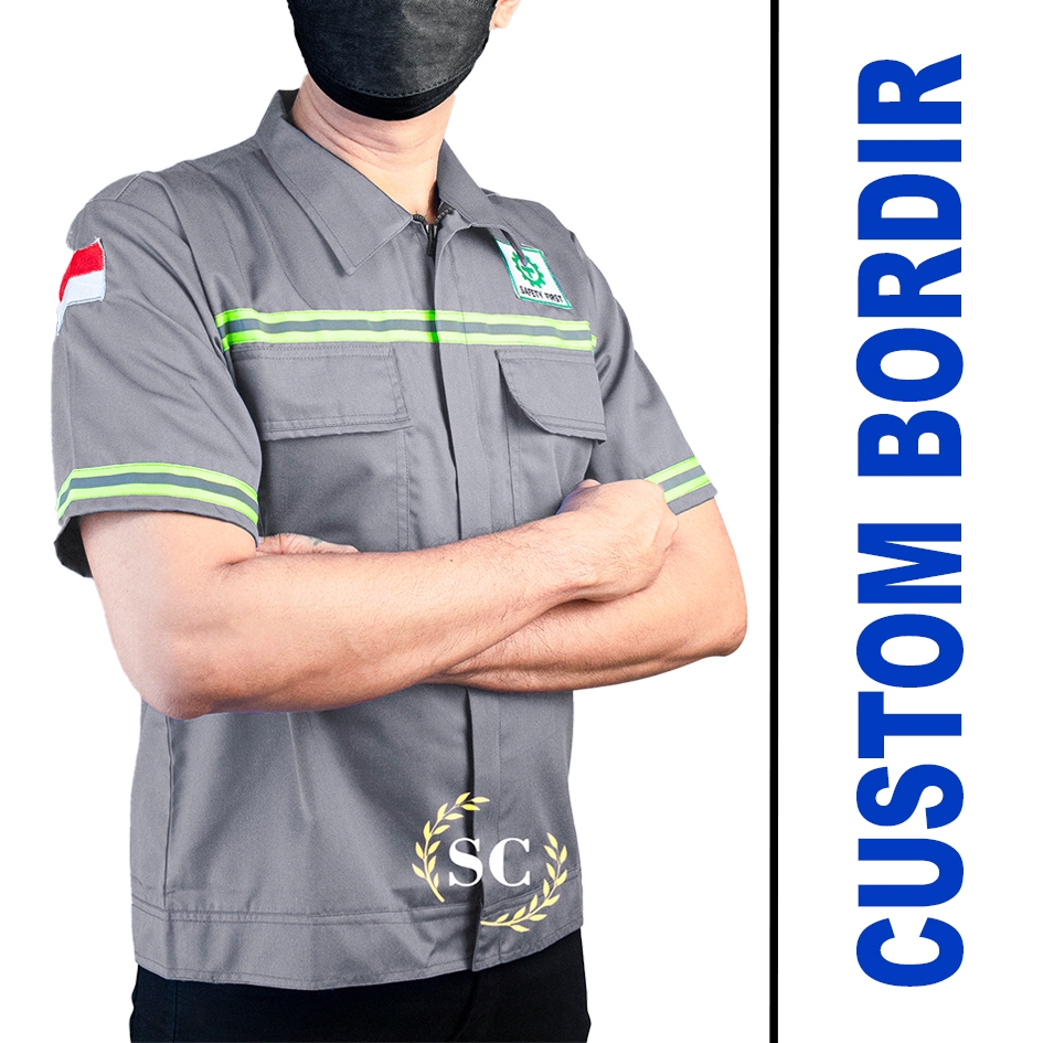Kemeja Safety K3 by Selamat collection REFLEKTOR HIJAU - Baju Seragam Kerja Atasan Wearpack Lengan Pendek Pria Wanita