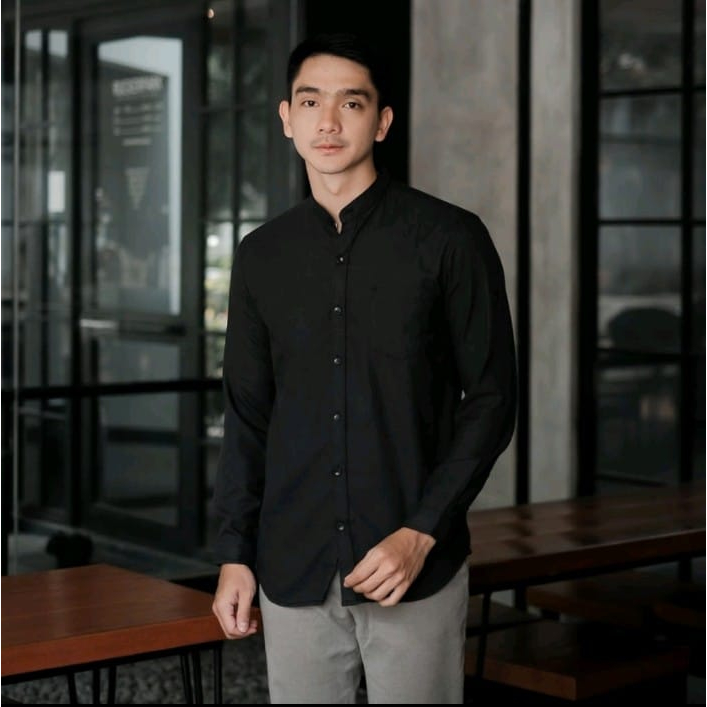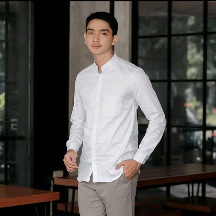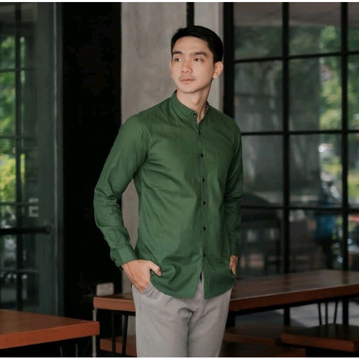 Kemeja Pria Kerah Sanghai Basic Slim Fit Terbaru Cotton Twil